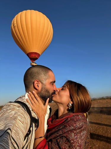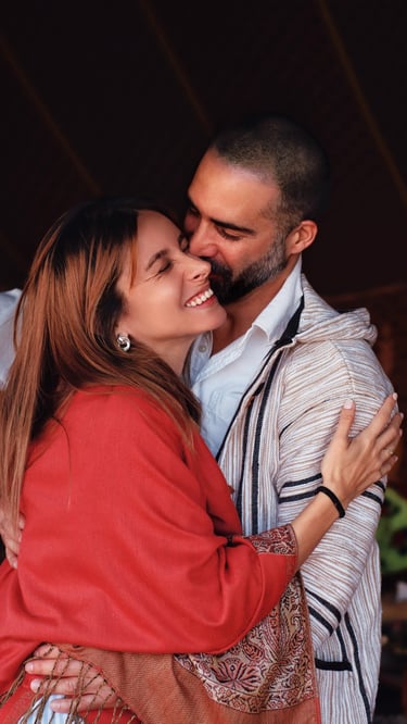 Que nuestro amor sea como las dunas: cambiante y vivo, pero eterno en su esencia, pacientemente entrelazado, colorido, fuerte y único. Y que cada día juntos sea como ese vuelo sobre las montañas de Atlas: ligero, infinito, con la certeza de que la luna y el sol existen para abrazarse.