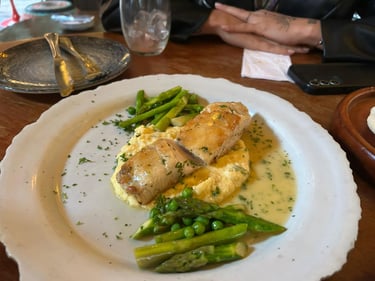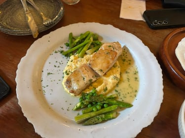 PESCA DEL DÌA: En mantequilla, con cremoso de papa criolla, y vegetales salteados.